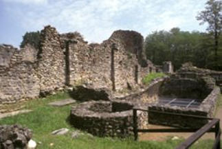 En descendant on passe à Gornate, dont l’église est un des plus anciens oratoires champêtres de Lombardie (Ve ?-VIe s. ?). Un peu plus loin à gauche, le monastère de Torba (photo ci-contre), appendice de l’ancien castrum de Castelsèprio, aujourd’hui géré par le FAI (Fondo per l’Ambient Italiano). Il eut à l’origine une fonction militaire, comme le montre la tour construite en galets du fleuve, et dès le VIIIe s., il fut occupé par les Bénédictines de Santa Maria del Monte de Varese ; dans la salle supérieure de la tour, fresques du VIIIe s. ; l’église voisine est du XIe s.