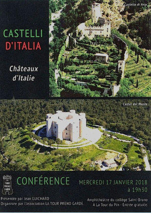 L’Association La Tour Prend Garde de La Tour du Pin organise une conférence de Jean Guichard, Castelli d’Italia - Châteaux d’Italie, le 17