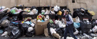 gauche, les ordures s’accumulent et les rats se multiplient (Cf. ci-dessous image d’une rue de Rome).