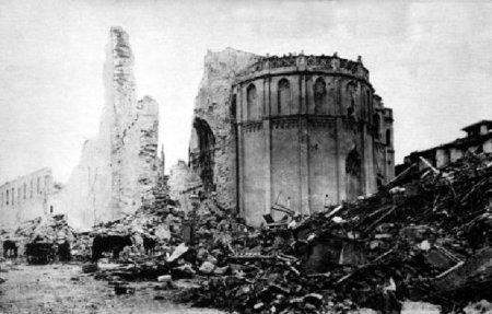 Messine, 1908 : l’abside de la cathédrale après le tsunami