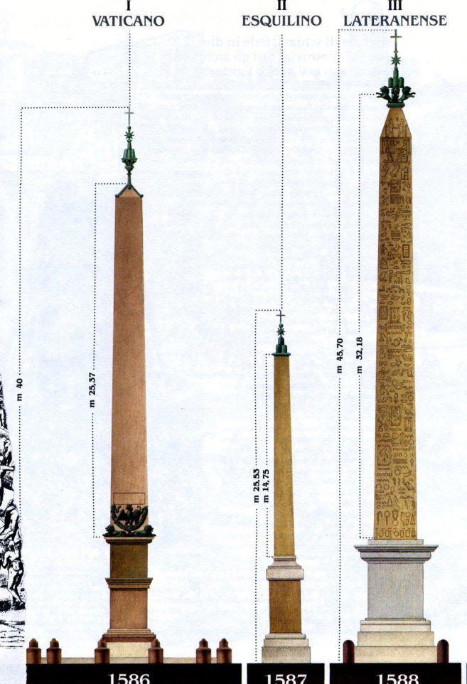 III - Lateranense. Le troisième obélisque relevé par Sixte V est celui du Latran, en granit rouge (32m.12, le plus haut et le