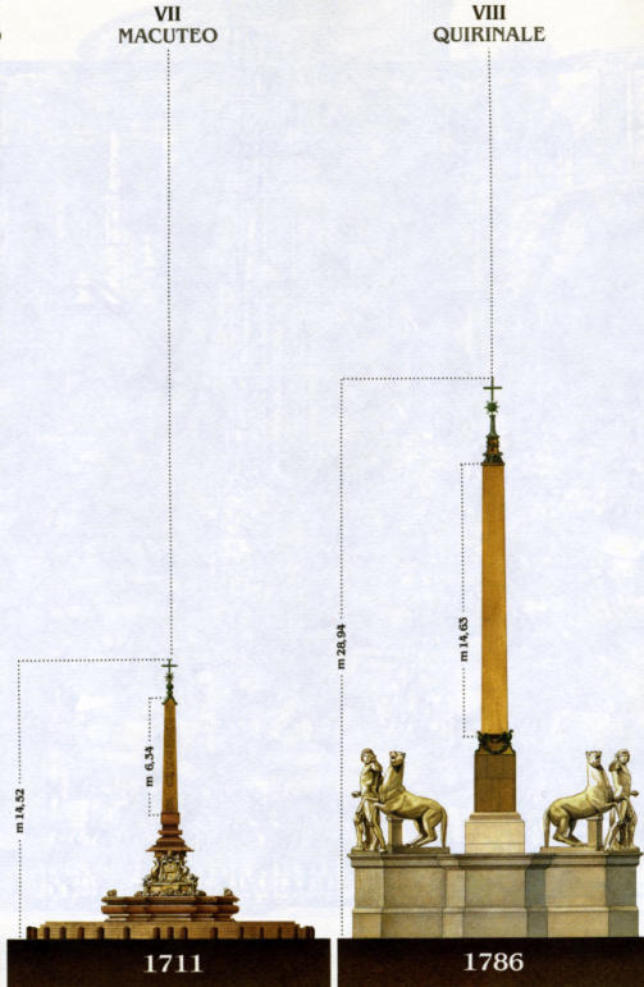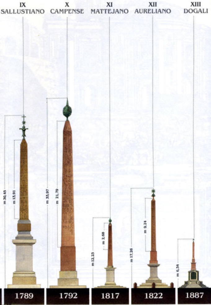 X - Campense. En 1792, Pie VI fait ériger par Giovanni Antinori son troisième obélisque sur la place de Montecitorio. Il