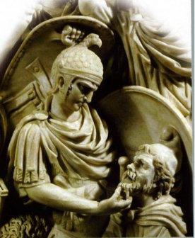 Pour se punir, il maintient sa main dans les flammes. Au vu de son courage, Porsenna
