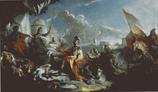 C.I. Carlone, Mucius Scaevola devant Porsenna, 1730. Voulant assassiner Porsenna