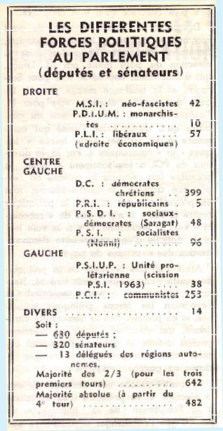 du PSI est par contre candidat, il obtient 96 voix, soit la totalité des voix socialistes. Par contre le PSDI, le PRI et le MSI s'abstiennent.
