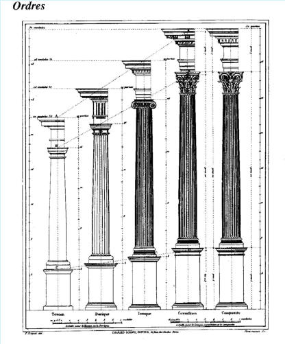 les temples antiques, sinon au Panthéon. Il augmente aussi l’importance de la maison en utilisant les différents ordres