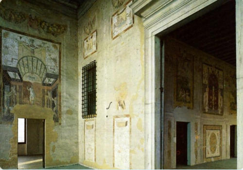chambre et l’arrière-chambre, a la même dimension que la salle centrale (16 pieds vicentins), et les parois ont une