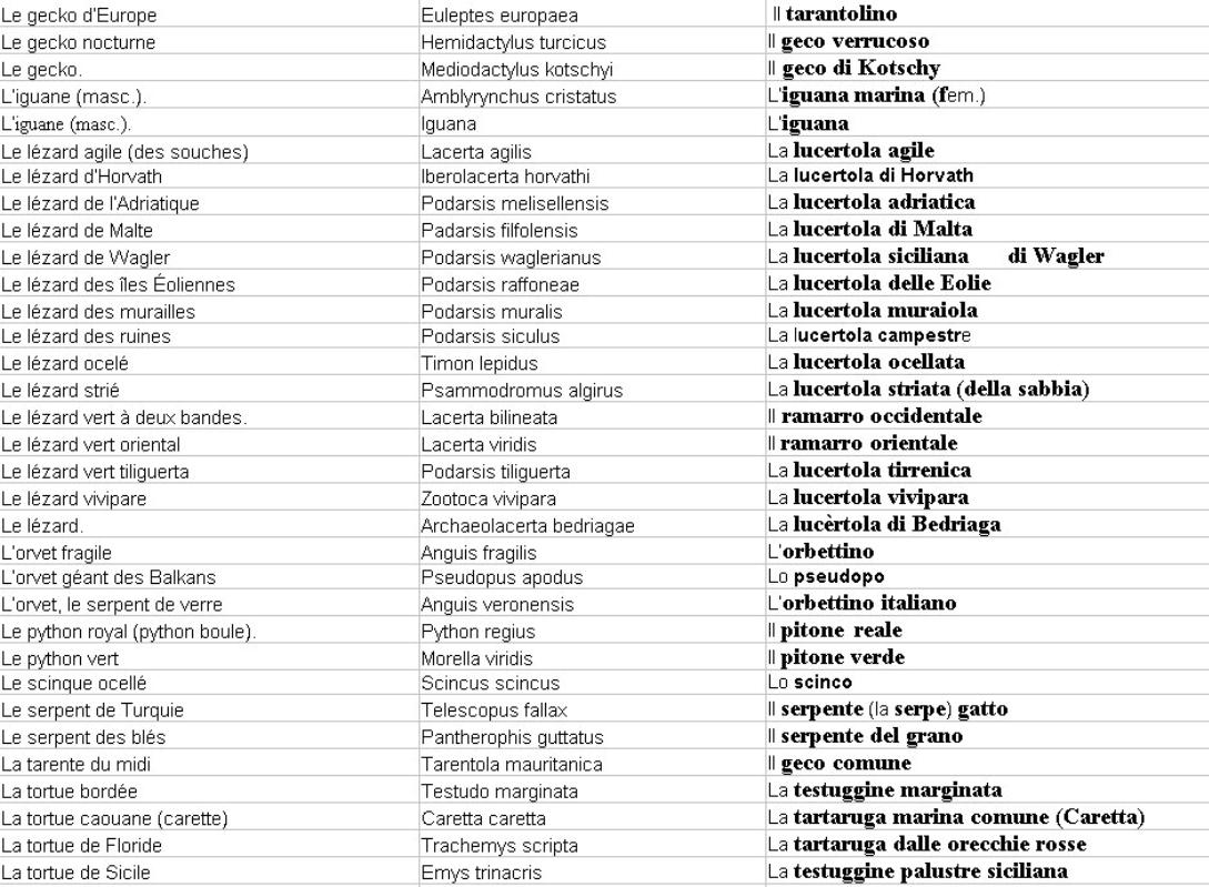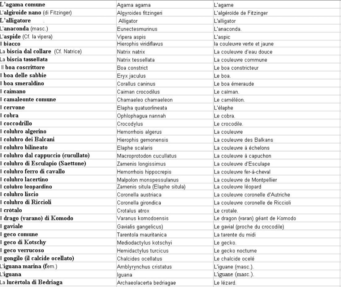 Il Sàuro = le Saurien (lucèertole, ramarri, gechi, iguane, varani, camaleonti)