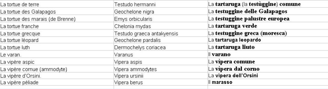 Il Chelone = le chélonien (tartarughe e testaggini)