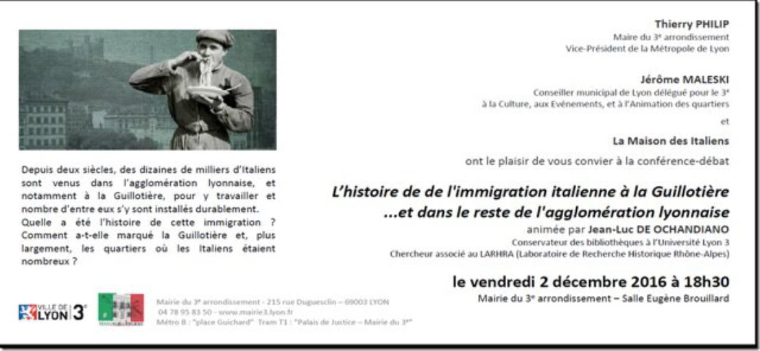 Et le 2 décembre 2016, Jean-Luc de Ochandiano animera une conférence sur l’histoire de l’immigration à La Guillotière et dans le reste de l’agglomération