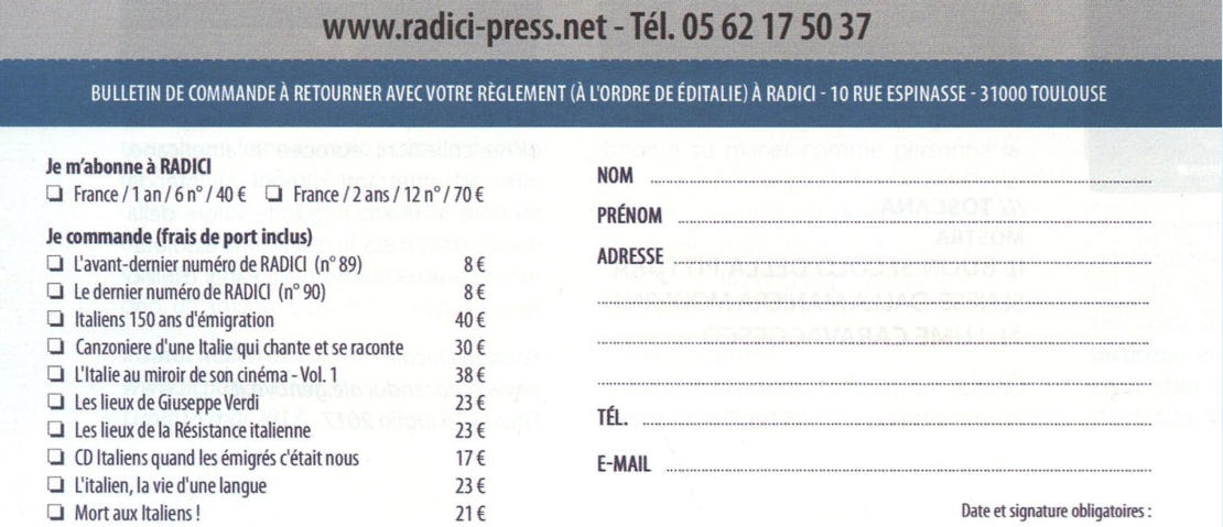* Et puisqu’il s’agit de lectures, nous vous recommandons à nouveau de vous abonner à la revue RADICI,