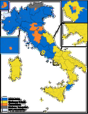 centre-droit qui obtient 37% à la Chambre, 37,49% des voix au Sénat (la Ligue 17,37% et 17,63, Forza