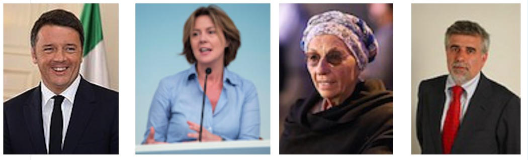 I leader di centro Sinistra : Matteo Renzi (Partito Democratico), Beatrice Lorenzin (Civica Popolare), Emma Bonino (+Europa), Giulio Santagata