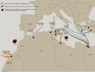 Principales routes de migrants en Méditerranée et nombre de morts.