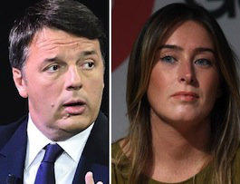 celui de Renzi (photo ci-dessus avec Maria Elena Boschi, toujours candidate aux prochaines élections