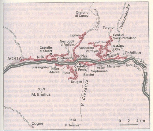 siècle a encore un clocher roman. Le château (Cf. Photo ci-dessus) contrôlait la route de Cogne ; il est fondé par