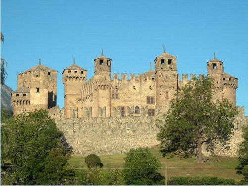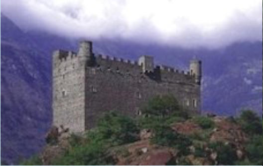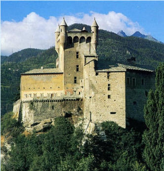 site en Val d’Aoste), avec son château (Cf. Photo ci-dessus) adossé au clocher