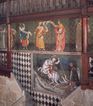 l’ancien hospice des pèlerins, fondé en 1368, qui porte encore des fresques représentant les Sept Oeuvres de Miséricorde et Les Vertus opposées aux péchés