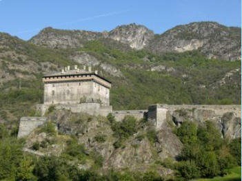 toutes les installations défensives plus au sud, au Fort de Bard. Le château est un carré de