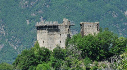 famille Montjoveto sur les ruines d’un « castrum » romain, sur un pic rocheux