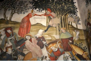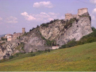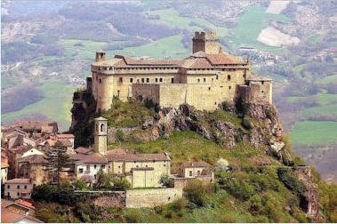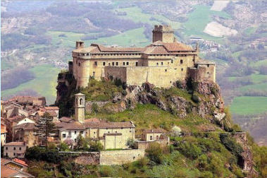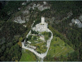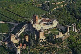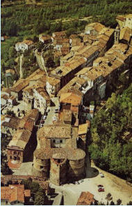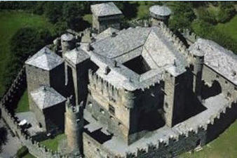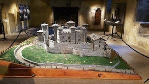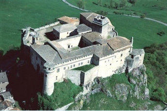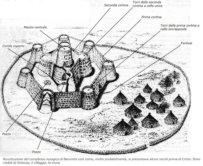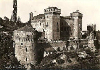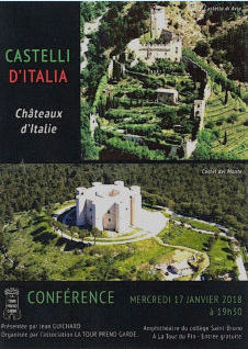 Les châteaux d’Italie(Texte revu de la conférence de Jean Guichard, donnée à La Tour du Pin pour La Tour Prend Garde le 17 janvier 2018)Le château est l’un des types de monuments d’Italie les plus importants en nombre et en qualité, même si beaucoup sont à l’état de ruines, qu’on travaille souvent à restaurer actuellement, car le château est l’un des éléments qui permettent de mieux comprendre toute l’histoire d’Italie.Le château, avec la villa, le palais, l’église, est l’un des monuments les plus significatifs de l’histoire d’une ville, d’une région, d’une civilisation. C’est aussi ce que montre votre maquette de l’ancien château de La Tour du Pin ((Cf. ci-contre, à droite), dont la plupart des habitants ignoraient l’existence, passant ainsi à côté de leur propre histoire. Et maintenant, on peut acquérir un château à plusieurs : Télérama parlait récemment de 25.000 personnes qui ont acheté un château pour financer sa restauration.Ô saisons, ô châteaux !Quelle âme est sans défauts ?Commençons par cette référence de Rimbaud. Que sont ces « saisons » ? Que sont ces « châteaux » ? Les « saisons », c’est le rythme de la nature, des arbres, de la reproduction, un rythme féminin ; les « châteaux », c’est le rythme de l’homme. Le château est un symbole de pouvoir, mais de pouvoir masculin. Le château c’est le monde du guerrier qui défend son bien, du mâle, celui qui défend, protège, ses sujets, sa femme, ses enfants, contre le guerrier voisin. La femme est « protégée », donc dépendante de son maître, le « seigneur ». Le château est le règne de l’homme. Pensons seulement au caractère phallique de la tour du château, le grand donjon dressé, qui restera, même dans les futurs palais urbains un symbole de pouvoir, que l’on fait monter ou que l’on coupe selon que le pouvoir augmente ou diminue ! N’oublions jamais ce premier rappel : le château ne nous raconte que l’histoire « dominante », celle de la classe au pouvoir, mais pas celle des 90% de la population paysanne, sinon dans leur soumission au pouvoir dominant, quand ils sont bien « protégés ». Mais il est plus séduisant de visiter un château, pour nous qui n’avons pas de château, cela nous fait plus rêver que de visiter la chaumière d’un pauvre bûcheron, d’un pêcheur ou d’un charretier : à Marano Lagunar dans le Frioul, on ira plutôt visiter la tour que les pauvres maisons de roseaux (les « casòn ») des pêcheurs (Cf. ci-dessus) qui sont pourtant aussi importantes historiquement.-1.D’où vient le mot « château » ?D’abord pluriel du provençal « chastel » (les « chastaux », du XIIe siècle), il est issu du latin « castellum », la forteresse, lui même diminutif de « castra », la forteresse, le lieu retranché, « castrum » désignant plutôt une localité édifiée à partir ou autour d’un camp. C’est bien dès l’origine, et déjà dans l’antiquité romaine, un terme de défense et de guerre. Ce n’est que bien plus tard que le « château » indiquera la résidence luxueuse des familles aristocratiques, manifestant leur grandeur sociale, leur richesse et leur pouvoir politique. Le château de Nicolas Fouquet à Vaux-le-Vicomte (1653) inspira ensuite Louis XIV à construire Versailles qui devint un modèle international (Exemple : la « Reggia », le Palais Royal de Caserta en Campanie).Les linguistes relient aussi le mot à « casta », chaste, c’est-à-dire « retranchée » de la vie sociale, affective, sexuelle. Un bon exemple est le plan du « castrum » de Turin, qui commande toute l’histoire du développement de la ville : un rectangle entouré de murailles parcouru de deux voies principales, le « decumanus » (axe est-ouest) et le « cardo » (axe nord-sud) avec une porte à chaque extrémité, que l’on discerne encore très bien quand on se promène dans Turin.Un autre exemple est le plan du « castrum » de Castelvetro près de Modène (Émilie-Romagne), où l’on voit mieux ce qui donnera sa structure aux futurs châteaux : en haut à droite le logement des officiers (qu’on retrouvera dans les châteaux de Lucera ou de Milan dans le Castel Sforzesco - Voir plus loin), en bas et en haut à gauche les divers bâtiments destinés aux soldats, aux magasins, aux entrepôts, etc.Le château est toujours aussi un indice important du type de civilisation dominant. Dans les civilisations agricoles ou pastorales anciennes stables, il est un élément de défense extérieure en même temps que de pouvoir intérieur (c’est là que réside le chef de la communauté). À l’opposé les civilisations nomades ne construisent évidemment pas de châteaux.Prenons un exemple en Sardaigne avec les « Nouraghes » du Xe au IIe siècles av.J.C. D’abord celui de Barumini, un des plus importants. On y distingue encore bien la grande résidence du chef, dominant les maisons de la tribu, entourées d’un grand mur de protection et d’une seconde muraille plus ample (Cf. à gauche et ci-dessus les reconstitutions qui évoquent très directement les châteaux du Moyen-Âge).Un second exemple est celui d’Arrubiu (Cf. reconstitution ci-contre à droite). Il y en a des centaines.2. Les civilisations urbanisées, « civilisées »Le mot vient de « cives », le citoyen d’une ville ; comme déjà la Rome antique, ces civilisations construisent moins de châteaux qu’elles ne fortifient les murailles des villes, et le château n’est qu’un élément de la muraille (Voir un élément de la muraille d’Aurélien, 271-282 apr. J.C.). Un exemple caractéristique, l’évolution du Palazzo Madama de Turin : c’est d’abord une porte de la muraille romaine qui entoure la ville (comme l’autre porte encore visible à Turin), puis au Moyen-âge, on utilise la porte pour faire une façade d’un château-fort ; lorsque le Piémont devient un Duché, puis un Grand-Duché, puis une 