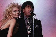 avec Un’ora fa. Il y retourne en 1987 avec Io amo et il y triomphe en 1989 en couple avec Anna Oxa (ci-contre avec Fausto Leali) en interprétant Ti lascerò.