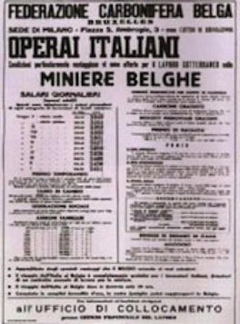 mineurs dans la mine de charbon ; parmi ceux-ci 136 étaient italiens. Cela provoqua un choc et de longs débats, car c’est un accord italo-belge qui prévoyait