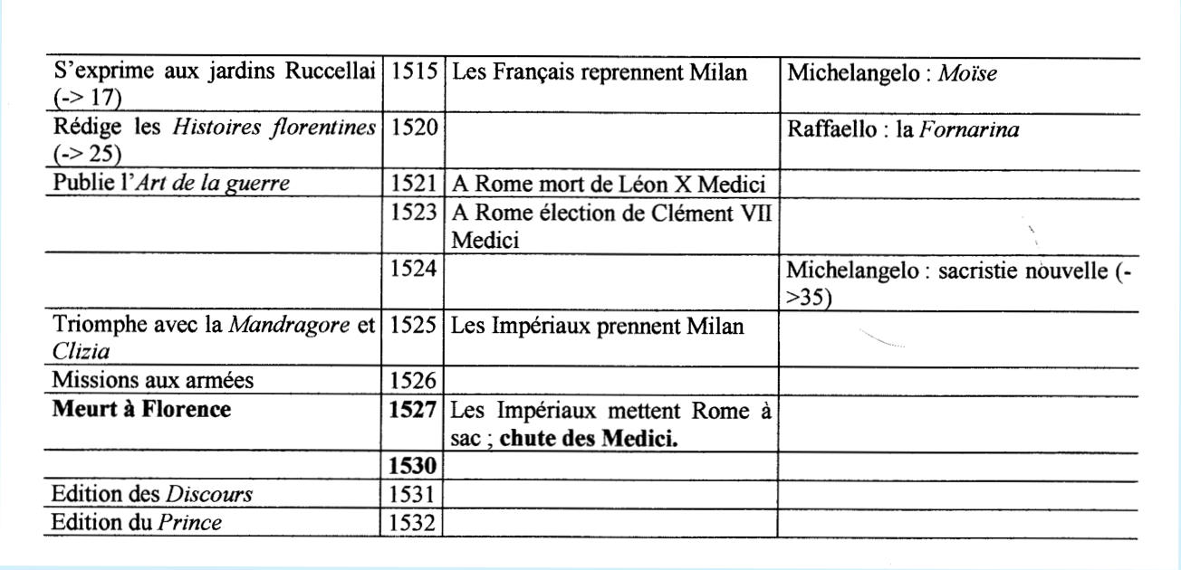 d’une période d’activité particulièrement intense de sa vie, alors que Machiavel a encore toute sa carrière devant lui. Il faudra attendre une dizaine