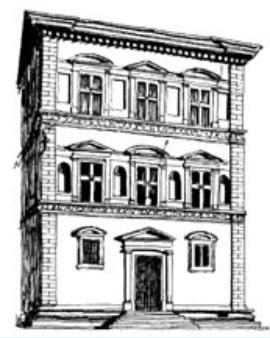 en haut, une grande corniche abrite l’édifice. Le contraste est saisissant avec les bossages lourds et encore défensifs des