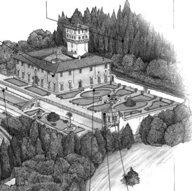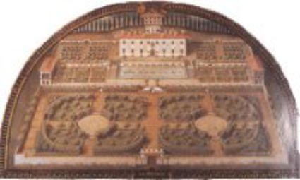Giusto Utens. Sur les côtés est et ouest du bâtiment, il délimite deux petits jardins secrets, aujourd'hui
