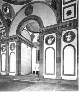 Par les cloîtres, on arrive à la Chapelle des Pazzi, création de Brunelleschi, une des premières œuvres de la Renaissance