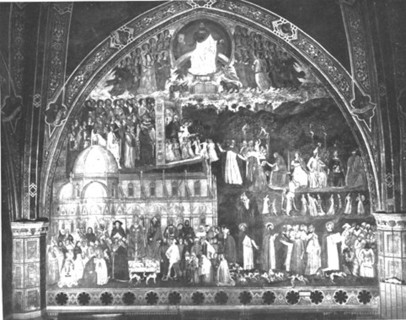 Andrea da Firenze peint son grand cycle de la Salle capitulaire du couvent entre 1366 et 1368 ; celle-ci est d’abord consacrée au Très Saint Sacrement, avant de