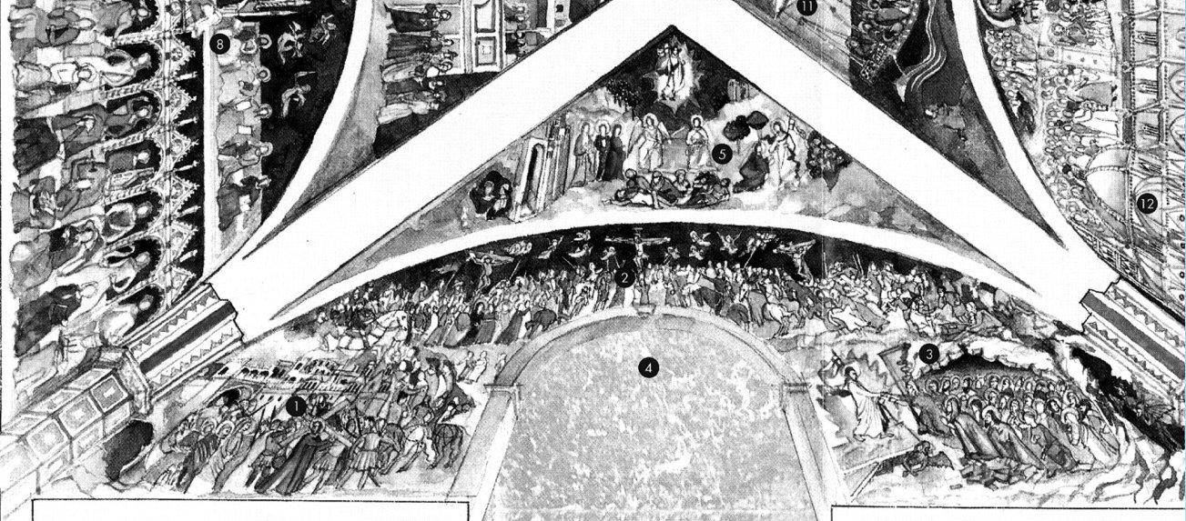 des fresques, s’il reste très ecclésiastique, devient aussi plus « démocratique », plus populaire. La Chapelle fut d’ailleurs construite et décorée grâce au don de