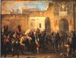 Starace, l’Électeur du peuple au Conseil de la Ville nommé par le Vice-Roi, assassiné et coupé en morceaux par le peuple ; après laquelle l’armée