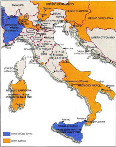 1713-14, l’Espagne perd la Sicile et la Sardaigne, elle perd aussi le contrôle de la péninsule