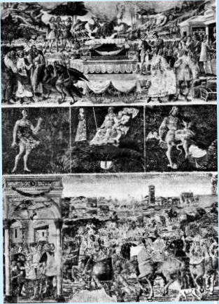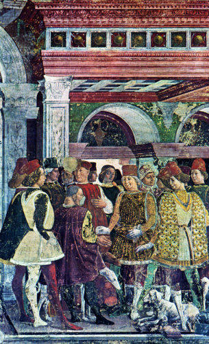 Blanche, soeur de Borso, avec Pic de la Mirandole ; à dr. moines qui entonnent une musique