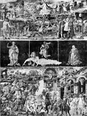 Boccace (dont existaient 2 copies dans la bibliothèque de Borso), et évidemment avec une référence aux Triomphes de