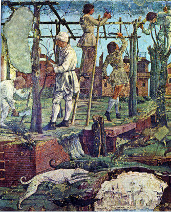 C’est l’unique cycle de fresques (complétées à la détrempe) qui subsiste de l’époque du duc Borso. Les auteurs sont les