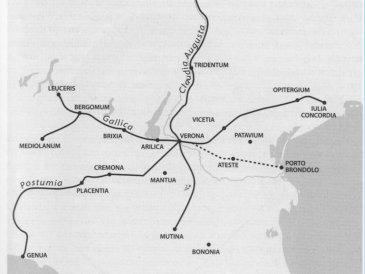 – Une ancienne voie consulaire romaine, la Via Postumia, un trajet de 665 miles romains (962