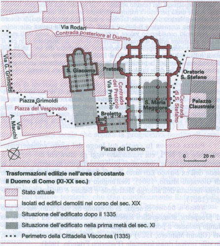 l’Église et des marchands. Elle provoque une modification du quartier : mutilation du Broletto, démolition du
