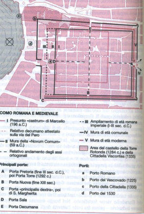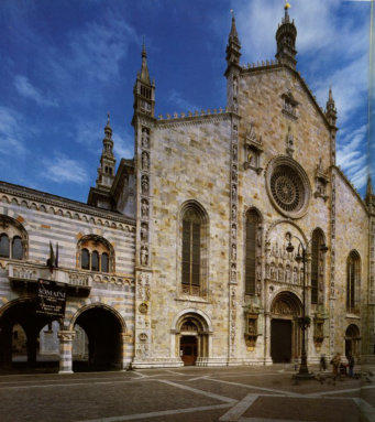Le lac de Côme C’est le troisième lac italien, avec une superficie de 145km2, un périmètre de 170 kms, et c’est le second bassin le plus profond d’Europe avec ses 410 mètres ; il a 46 kms de long et une largeur de 650 m. à 4,3 kms. Il a la forme d’un Y renversé avec ses deux bras de Côme et de Lecco. Il est formé par le fleuve Adda qui pénètre dans le lac au bout de 121 kms de son cours pour en ressortir à Lecco et aller se jeter dans le Pô. Pendant la préhistoire, le lac servit de moyen de communication entre la plaine du Pô et la Suisse et l’Allemagne, les routes côtières ne se réalisant qu’à partir du XIXe s. Les Romains y fondent la ville de Côme, lieu stratégique pour la défense de la plaine du Pô et tête de pont vers le Nord de l’Europe. C’est à cette époque que commence l’appréciation esthétique du lac, Cassiodore en célèbre les beautés et Pline le Jeune décrit le plaisir de vivre dans ses villas. Son nom latin était « Larius », d’une racine pré indoeuropéenne « lar » qui signifiait « lieu creusé » ; à partir du Moyen âge, on l’appela « Lacus Comencinus » ou « comensis » qui devint « lago di Como ». Mais on utilise encore «Lario ».Après l’invasion lombarde, la période communale marqua une reprise de l’activité économique et artistique, avec les « maîtres de Côme » (les « Comacini »), tailleurs de pierre et maçons qui ont probablement hérité des techniques romaines et qui sont consacrés par un édit lombard de 643 ; leur nom vient soit de l’île « comacina » sur le lac de Côme soit du latin « cum machinis » indiquant les outils qu’ils utilisaient ; ils ont eu un rôle essentiel dans le développement de l’architecture et de la sculpture romanes en Italie, en Bourgogne et en Europe. Ces « libres maçons » constituaient une corporation, étaient organisés en « loges » par lesquelles se transmettaient leurs connaissances et leurs symboles, parmi lesquels le compas et la rose. Ils seront un des antécédents de la « franc-maçonnerie ». La domination espagnole, encore aggravée par les épidémies de peste, crée une situation de crise, par la pression fiscale qu’elle exerce : l’industrie de la laine régresse au profit de celle de la soie. Au XIXe s., le tourisme international trouve place sur les bords du lac, encouragé par la douceur du climat et par l’enthousiasme des romantiques, de Manzoni à Stendhal, de Byron à Franz Liszt qui se réfugie sur le lac de Côme avec sa maîtresse Marie d’Agoult et y compose le second volume des Années de pèlerinage, de Flaubert qui disait : « Ici je voudrais vivre et mourir » au duc de Windsor et aux nombreux acteurs des films qui furent tournés dans ce décor. Cette architecture des villas et des grands hôtels respecta cependant l’environnement naturel des bords de lac. Ce n’est qu’après la seconde guerre mondiale que la motorisation, le développement des résidences secondaires et des plages privées, le tourisme de masse, firent apparaître de graves problèmes écologiques et environnementaux. Cela fait l’objet de nombreuses discussions entre les pouvoirs public et les Comités de citoyens ou les personnalités comme George Clooney qui défendent l’environnement : en 1997, la Région de Lombardie avait libéralisé les autorisations de construction délivrées par les Communes, mais en 2007, une loi impose un contrôle de l’État donné par la surintendance aux Beaux-Arts pour la sauvegarde de l’environnement et du paysage lacustre. Est demandé  en outre le classement du « Lario » sur la liste du patrimoine mondial de l’UNESCO. Après la visite de Côme, nous parcourrons la route de Côme à Menaggio, puis nous traverserons en bateau de Menaggio a Bellagio, pour revenir à Côme et à Varese. ` CÔME La zone est habitée dès le IXe s. av.J.C. sur une voie de communication entre les Alpes et la vallée ; au VIe s. av.J.C., les Celtes y installent des fortifications, mais ils sont vaincus en 196 av. J.C. par les Romains qui construisent un « castrum » (« Comum Oppidum ») qui devient « municipium » sous César en 59 av.J.C. et se dote d’un théâtre, d’une basilique, de thermes, tandis que la campagne environnante est soumise à la colonisation et à une centuriation régulière. La ville est conquise en 569 par les Longobards qui construisent des églises, dont S. Eufemia et S. Fedele. C’est à cette époque que se développe l’activité des « maestri comacini ». Entre le XIe et le XIIe s., la Commune s’étend et devient puissante, elle est donc en rivalité avec Milan ; les Visconti l’emportent en 1335. La construction à Lecco d’un pont provoque la montée des eaux du lac et il faut surélever le sol. En 1447 les Milanais démolissent la forteresse et commencent la construction de la cathédrale. Sous les Espagnols, l’économie s’écroule et se développe à nouveau sous la domination autrichienne (industrie de la soie). La ville grandit au XIXe s., 9810 habitants en 1859, 43714 à la fin du siècle, 80510 aujourd’hui. ; en 1871 on comble une partie du port  (emplacement de la place Cavour) et on ouvre la via Plinio entre cette place et la cathédrale. Les communications se développent : ouverture du tunnel du Saint Gothard en 1882, ligne Côme-Milan, funiculaire pour Brunate en 1893. L’entre-deux guerres connaît une grande activité architecturale (l’école rationaliste du CM8) et picturale (Carla Radiali, Aldo Galli, Mario Radice, Manlio Rho). La seconde guerre mondiale détruit beaucoup, il faut reconstruire et les banlieues s’accroissent. Malgré la concurrence chinoise, l’industrie de la soie reste vivante grâce à ses productions de haute qualité ; le tourisme est aussi une importante source de revenus. Commencer la visite place Cavour (voir la décoration de l’hôtel Métropole et Suisse de Giuseppe Terragni en 1927), puis la via Plinio cré