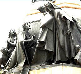 Dante et Virgile rencontrent Sordello dans le Purgatoire - Monument à Dante de Cesare Zocchi à Trento (1896).