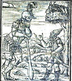 (« géant nain », il ne mesure que 4 mètres), beaucoup plus petit que lui. Le style est celui, populaire, des cantastorie chevaleresques des XVe