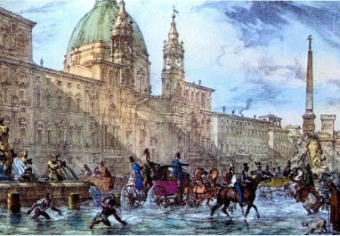 A.J.B. Thomas, Inondation de la Place Navone devant Sainte-Agnès.