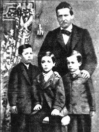 Pascoli enfant (à droite) avec son père et deux de ses frères.