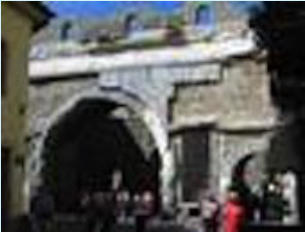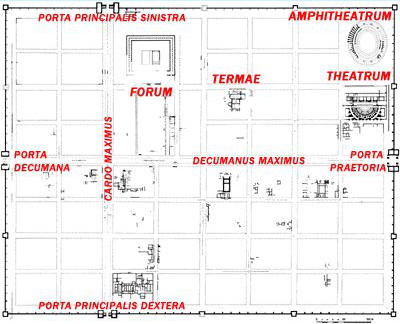 De g. à dr. et de haut en bas :; * Maquette du Forum ; * Sommet de Porta Praetoria ; * Aoste