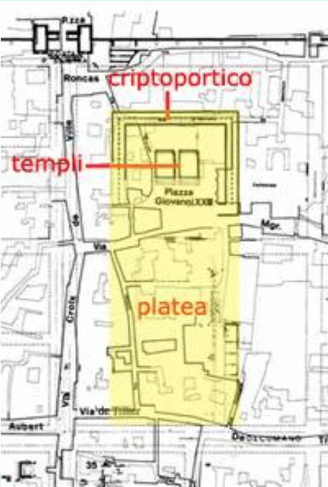 vue du ciel ; * Plan de la villa Consolata et du Forum.