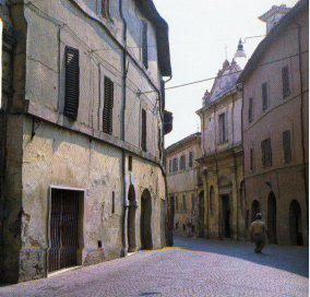 XVIIIe s.). le corso Mazzini débouche sur la piazza della Libertà, ancienne « corte » du palais des Ancaiani (XVIIe s.), grands