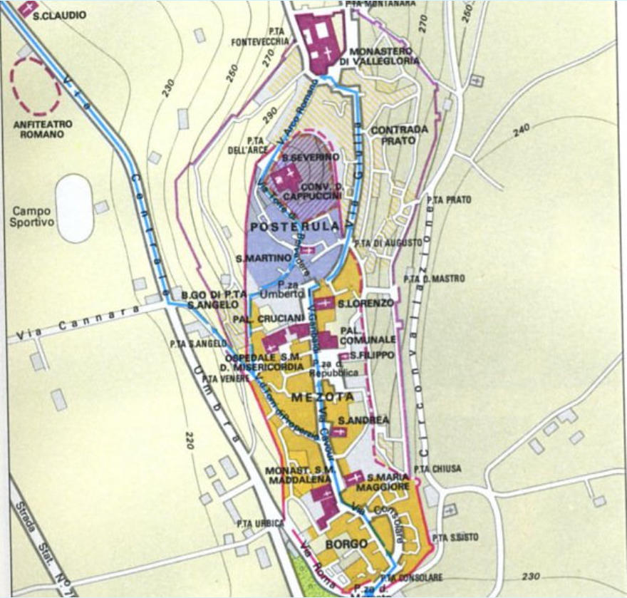 Julia » et les territoires des Sources du Clitunno. La ville prend son aspect actuel, à l’intérieur des murailles, le long de l’axe central qui va de la Porta Consolare à la Porta dell’Arce.