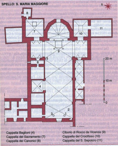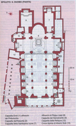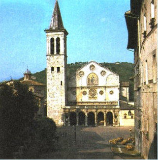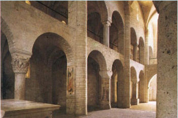 palais se trouve aussi l’église S. Eufemia (intérieur ci-contre), bel exemple de roman de Spoleto (XIIe s.).